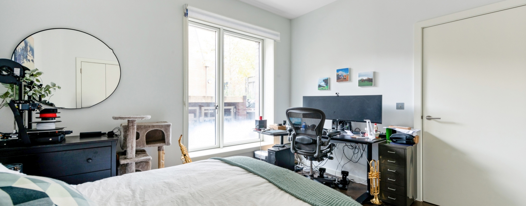 Bedroom 12'6" x 10'7" Plus built-in wardrobe. Large window with door to patio