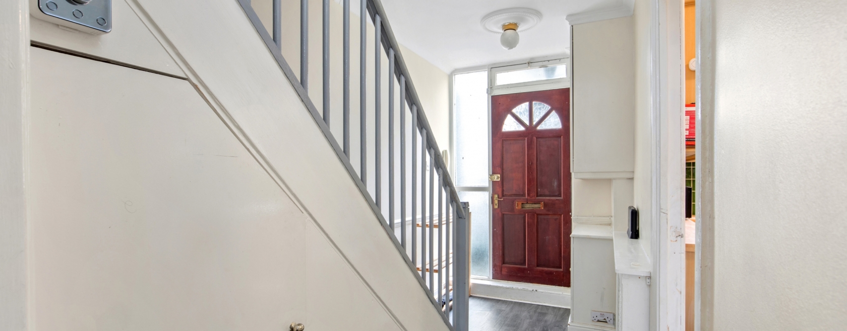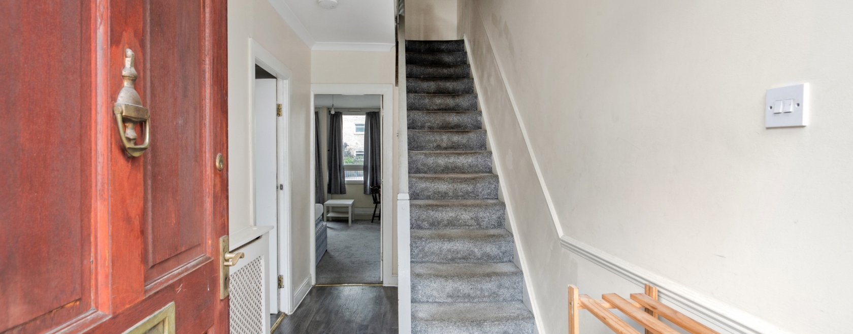 Entrance hall 13' x 6' Open to staircase. Under stairs cupboard