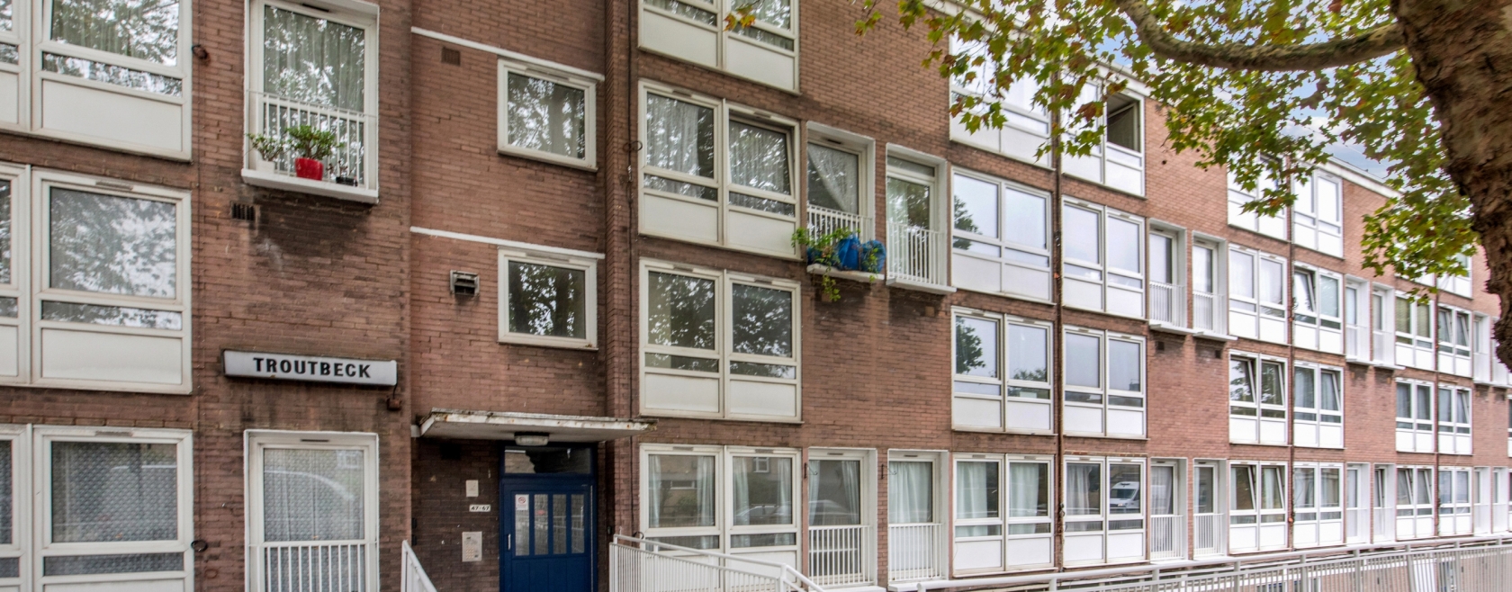 For almost a century this area served as London’s hay and straw market until it was closed during the 1920s. A branch of the Regent’s Canal ran north of Robert Street forming Cumberland Basin and Robert Street and neighbouring roads were flanked with terraced houses. In the early twentieth century the area became popular with artists. Walter Sickert, who lived nearby in Mornington Crescent, had his studio in Robert Street in 1894. Due to its close proximity to Euston and Kings Cross Station, the area became popular with the Luftwaffe during the Second World War and Robert Street suffered severe damage from aerial bombing. In the early 1950s it was decided that the remaining buildings be demolished and redeveloped. Thirty two acres of land surrounding Robert Street, which became Regent’s Park Estate, was sold by Crown Estate to St Pancras Council and building began in 1954. Initially 245 flats and six shops and three blocks of 11 storeys were built, all faced with yellow stock brick, designed by the Davies and Arnold partnership. Today these blocks include Borrowdale, Derwent, Newby, Rydall Water and Woodhall. Demographically, it’s unlike most council estates with the ethnic mix you’d expect to find in an inner London borough and a more elderly population, but in recent years, according to one sample survey, one in five of residents are over 60 and a quarter of the estate’s homes are now privately owned.